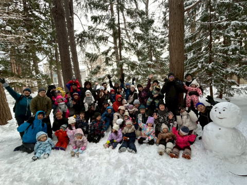 暴風雪の後、4月の陽気が続いています。これから三寒四温を繰り返しながら、だんだんと春になっていくのでしょうね。2/14(土)の森のひろば「雪はともだち」では、19組54人の親子の参加がありました。べた雪を丸めて転がして雪だるまを10体以上作り、雪合戦や恒例の長い腹滑りを楽しみました。